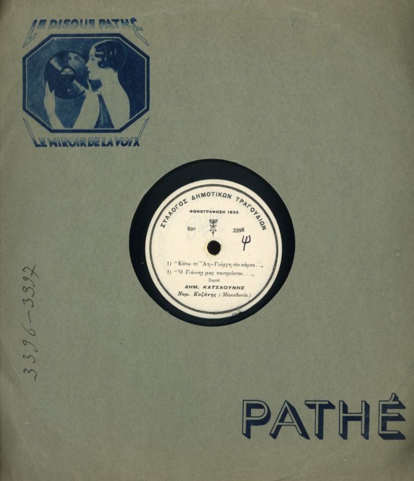 Δίσκος 78 rpm (Μερλιέ 062/από τη συλλογή του ΜΛΑ) |  Από αριστερά: Γεώργιος Αγγέλου & οι εύζωνοι: Κατσανιώτης Σπύρος, Ζάχος ή Σταυροθόδωρος & Δημήτρης Κατσαούνης (Ηχογράφηση 1930) |  Από αριστερά: Γεώργιος Αγγέλου & οι εύζωνοι: Κατσανιώτης Σπύρος, Ζάχος ή Σταυροθόδωρος & Δημήτρης Κατσαούνης (Ηχογράφηση 1930) |