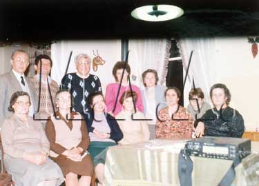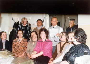 Κωσταράζι 1988: Στιγμιότυπο από την ηχογράφηση. Από αριστερά (όρθιοι): Μηνάς Τζήκας, Αργύρης Τζάτζης, Μάρκος Δραγούμης, Ερμιόνη Μίχου, Χρυσούλα Καραγκούνη, Χρ. Μανώλης (παιδί) (καθιστοί): Χρυσάνθη Καρακώστα, Ελευθερία Καραγκούνη, Κλεοπάτρα Λαΐου, Μαριέτα |