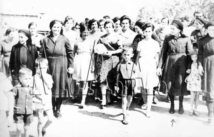 Η Πολυξένη Μανώλη (2η από αριστερά, έχουσα στο αριστερό της χέρι κοράσιον) / Κωσταράζι Καστοριάς 1963